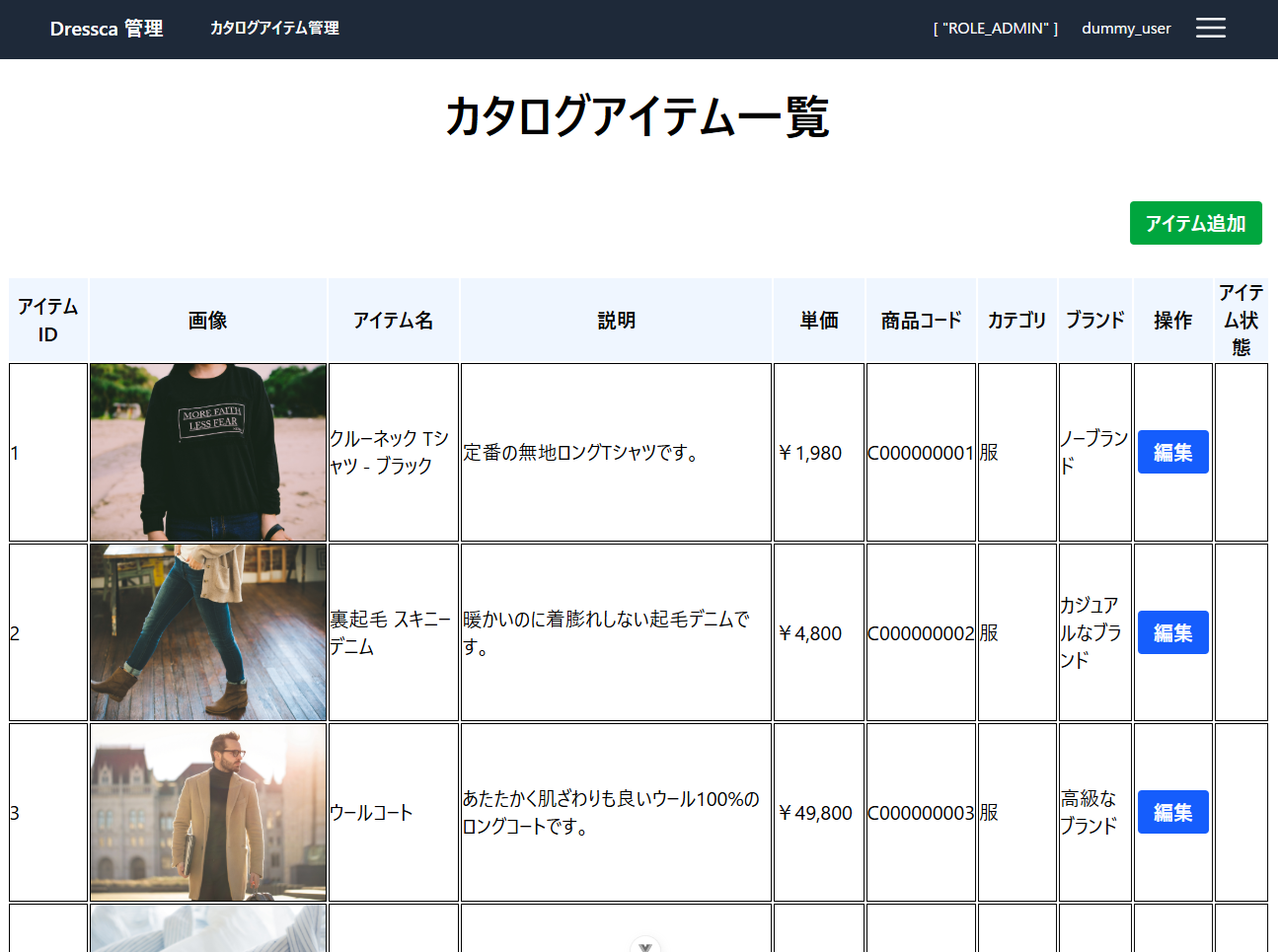 CSR アーキテクチャに従って実装したサンプルアプリケーションです。 Dressca - クイックスタート からダウンロードし、ローカル環境で実際に動作を確認してください。